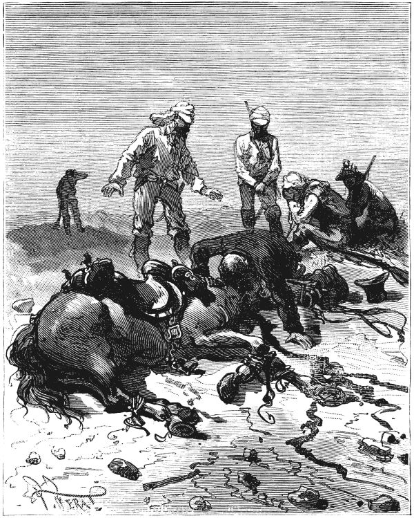Путники, уже почти агонизировавшие, пили жадно, хотя проводник экономно отмерил каждому совсем небольшую порцию. Вернувшись к жизни, они едва были способны пробормотать слова благодарности и тотчас заснули тяжелым сном.
