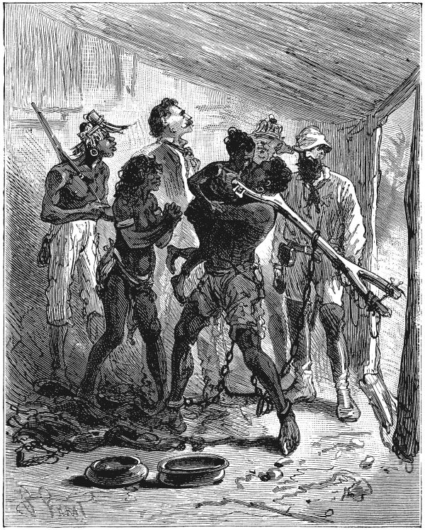 Александр, Альбер, Жозеф и даже мастер Виль не могли поверить своим глазам. Как! В XIX веке, в нескольких переходах от английских владений еще встречаются злодеи, занимающиеся возмутительной торговлей людьми? И в жилах этих чудовищ течет наполовину кровь тех самых черных народов, которыми они торгуют, и наполовину кровь белых! Какая мерзость!