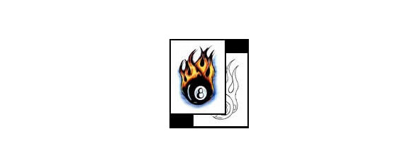 Восьмой шар – этот дизайн может иметь несколько различных значений, и его символика зависит от контекста, в котором он используется. Вообще «восьмой шар» завершает партию игры в пул, но в силу правил игры, забитый «восьмой шар» в свой удар автоматически делает вас проигравшим – уступившим партию. А так как многие бильярдные залы были известны своей плохой репутацией (это мы можем видеть в некоторых фильмах, например, в «The Hustler» с Полом Ньюманом, и «Цвет Денег» с Ньюманом и Т. Крузом), то «восьмой шар» в татуировке подразумевают алкоголь, наркотики, азартные игры, женщин легкого поведения, азартные игры и т. д. Некоторые люди рассматривают «восьмой шар» как получение шанса, если повезет, то всё получится. Это та татуировка, которая намекает на хождению по краю или испытание судьбы. Термин «восьмой шар» также несет определенное понятие на жаргоне, например, это очень опасная комбинация героина и кокаина. Если бы вы спросили у дилера 60—70-х годов в США «кокса на восьмой шар» он бы понял, какая именно доза вам нужна, таким образом «восьмой шар» символизируют готовность рисковать и возможность удачи или неудачи, другими словами «Жизнь – азартная игра!»