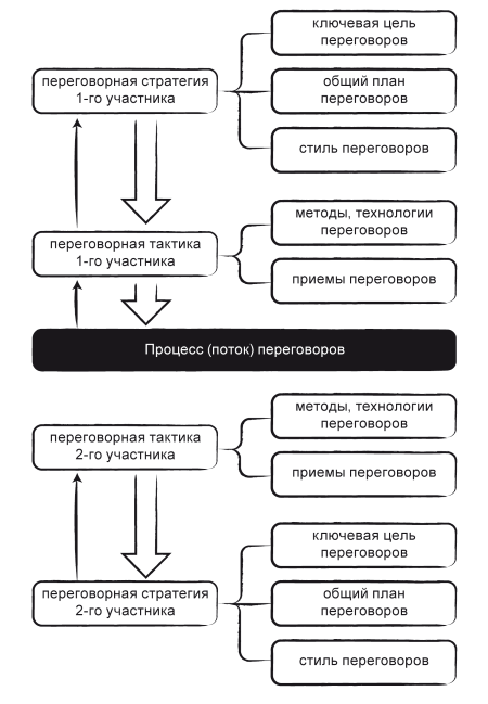 определяющими элементами переговорного процесса являются стратегия и тактика, что подчеркивает важность планирования процесса, его предварительного осмысления и подготовки.