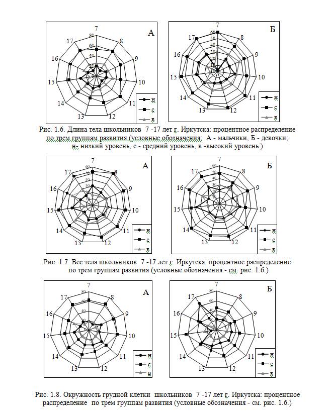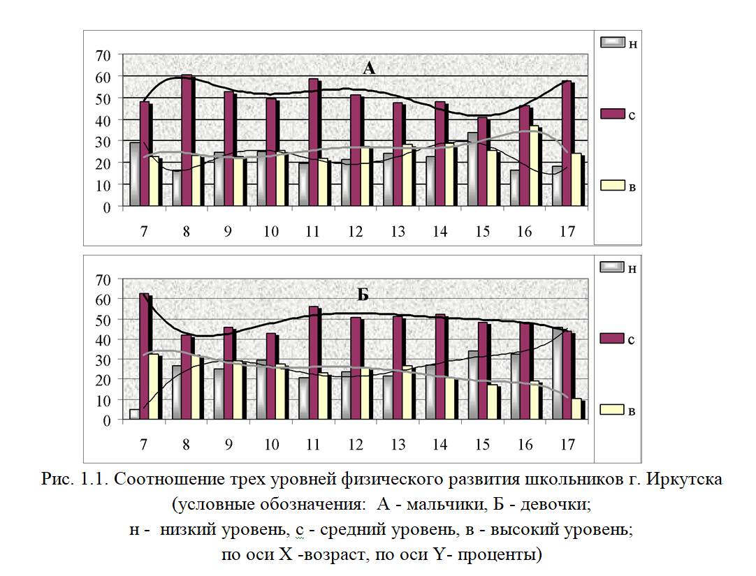 2. Гендерные различия физической подготовленности школьников в исследованных регионах не одинаковы и изменяются с возрастом. Так, в г. Иркутске у девочек она лучше, чем у мальчиков. В г. Екатеринбурге у девочек она не только выше, но и с возрастом улучшается заметно быстрее, чем у мальчиков.