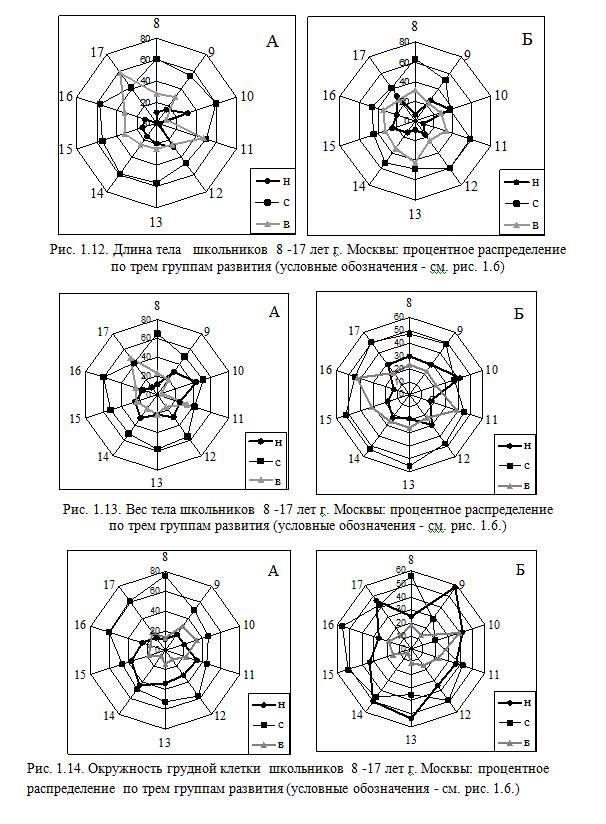 В г. Москва возрастные колебания ФП в равной степени обусловлены изменчивостью скоростных, скоростно-силовых качеств и выносливости. В отношении силы отмечается четкий половой диморфизм: у мальчиков с 8 до 14 лет преобладает ее низкий уровень, а у девочек с 11 до 17 лет – высокий.
