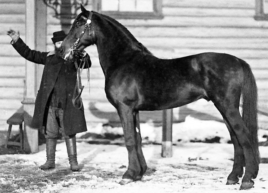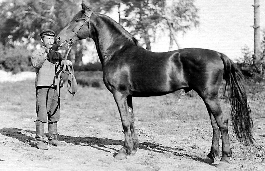 «Мне предстояло теперь подобрать жеребцов-производителей. Я хотел купить двух жеребцов, но купил четырех. Вспомнив слова Пономарёва, я от Охотникова вернулся в Хреновое, и вместе с Пономарёвым мы посетили заводы В.Я. Тулинова и князя Орлова, но там подходящих жеребцов не оказалось: ставочные четырехлетние жеребцы были уже уведены с этих заводов, а из производителей никто не продавался. Подовские лошади мне не понравились, после охотниковских они показались мне простыми и сырыми. Тулиновские лошади были лучше, элегантнее и суше, но я в душе ставил своих охотниковских кобыл выше. Пономарёв восхищался подовскими кобылами, хотя и говорил, что им далеко до “наших”, то есть хреновских.