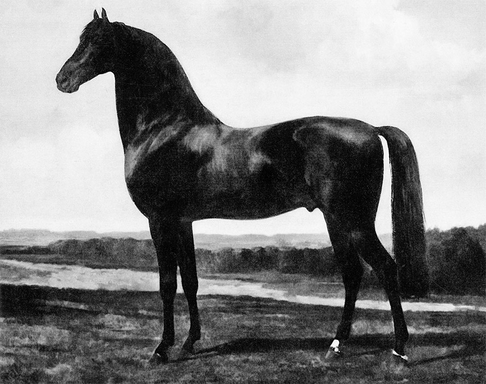 Булатная. Формы этой кобылы И.М. Стахов в своем письме ко мне рисует так: «Булатная была белой масти, не капитальна – мелка; широкая в заду, несколько узковата передом, с хорошим крупом, но с мягковатой спиной, шеиста, с красивой породной головой, суха, на низких ногах с удовлетворительной костью». Я считаю, что Стахов дал блестящее описание Булатной. Именно такой экстерьер должна была иметь эта кобыла. Не забудем, что кровь Бычка в ней была повторена дважды. Отсюда ширина в заду, мягковатая спина, шеистость, сухость и т. д.