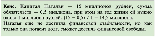 Уровень богатства позволяет понять, на каком уровне финансовой свободы вы находитесь. Для этого поделите net worth на годовые расходы; финансовая стабильность наступает при коэффициенте 15, финансовая свобода – от 30 и выше.