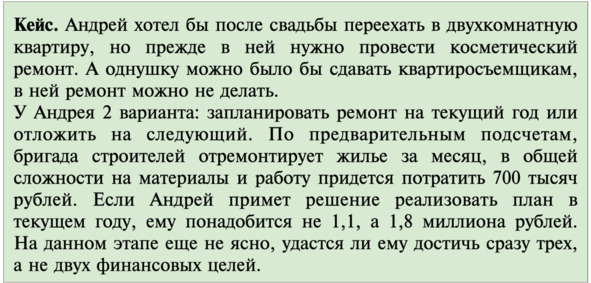 Другой вариант плохо сформулированной цели: поехать в свадебное путешествие. Правильная формулировка: свадебный круиз на двоих по Персидскому заливу из Абу-Даби в декабре 2023 года сроком 7 дней и стоимостью до 400 тысяч рублей.