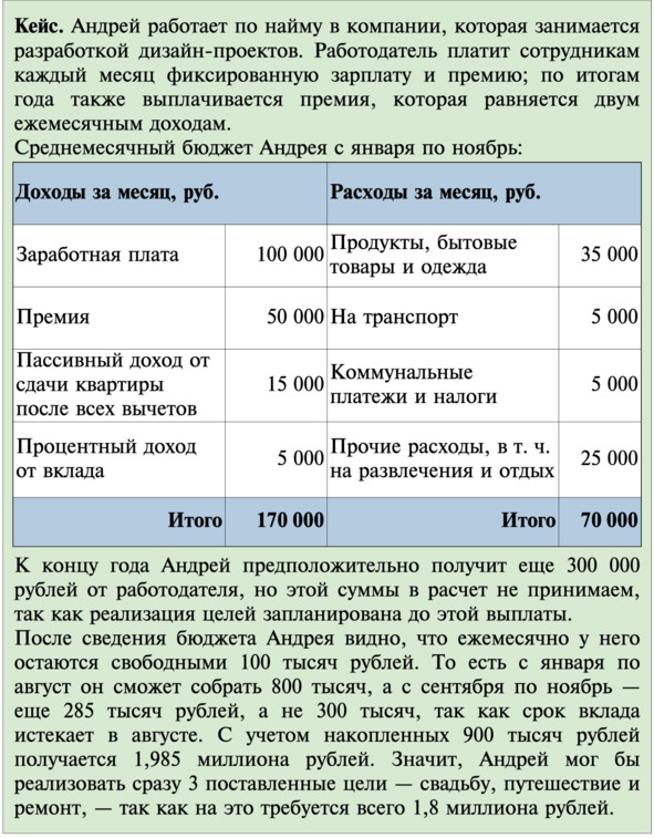 Рассмотрим, как составить личный финансовый план, на конкретном примере.