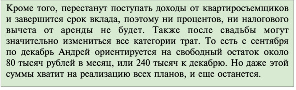 – хватило ли денег на все нужды и не было ли серьезных просадок, когда приходилось брать в долг у самого себя или, еще хуже, у кого-то другого;