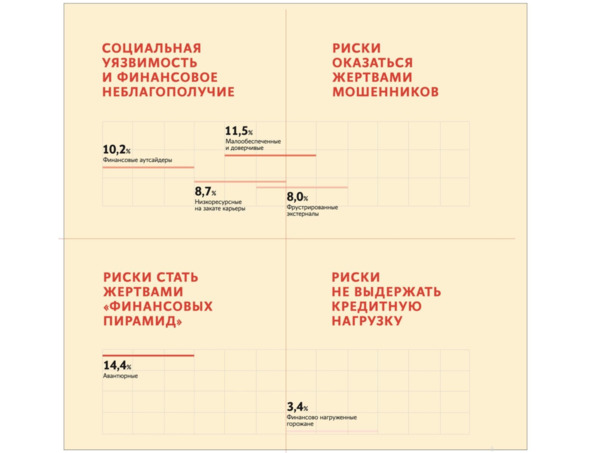 Как мы говорили выше, в зависимости от типа финансового поведения можно выделить основные риски для разных категорий людей: