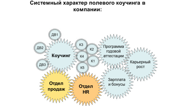 Причин здесь, конечно больше, чем одна, но главной из них, на мой взгляд, является СИСТЕМНЫЙ ХАРАКТЕР полевого коучинга, его взаимозависимость и взаимосвязь с другими важными «шестеренками» менеджмента – процедурами, политиками и т. д.
