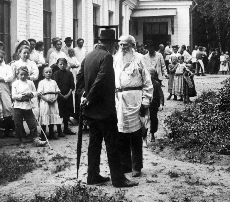 Лев Николаевич однажды побывал в губернской психиатрической больнице доктора Яковенко в селе Мещерском Сцена, запечатленная на этой фотографии весьма характерна: ее по справедливости следует назвать “Хождение графа Толстого в народ”.
