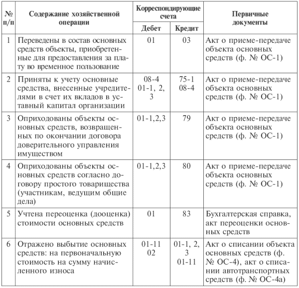 Таблица 4.1Типовая корреспонденция счетов по учету основных средств