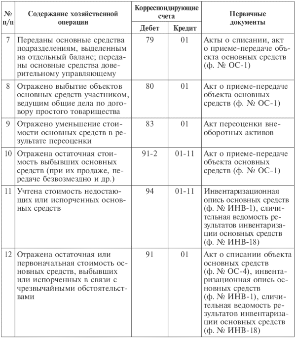 Продажа основных средств формирует прочие доходы (расходы) организации. Выбытие основных средств в соответствии с ПБУ 9/99 «Доходы организации» и ПБУ 10/99 «Расходы организации» во всех случаях отражается на сопоставляющем счете 91 «Прочие доходы и расходы». При этом к счету 01 «Основные средства» открывается субсчет «Выбытие основных средств». По дебету этого субсчета отражают первоначальную стоимость выбывающего объекта основных средств, а по кредиту – сумму начисленной амортизации. По завершении процедуры выбытия остаточная стоимость объекта списывается со счета 01 «Основные средства» на счет 91 «Прочие доходы и расходы», субсчет 2 «Прочие расходы».