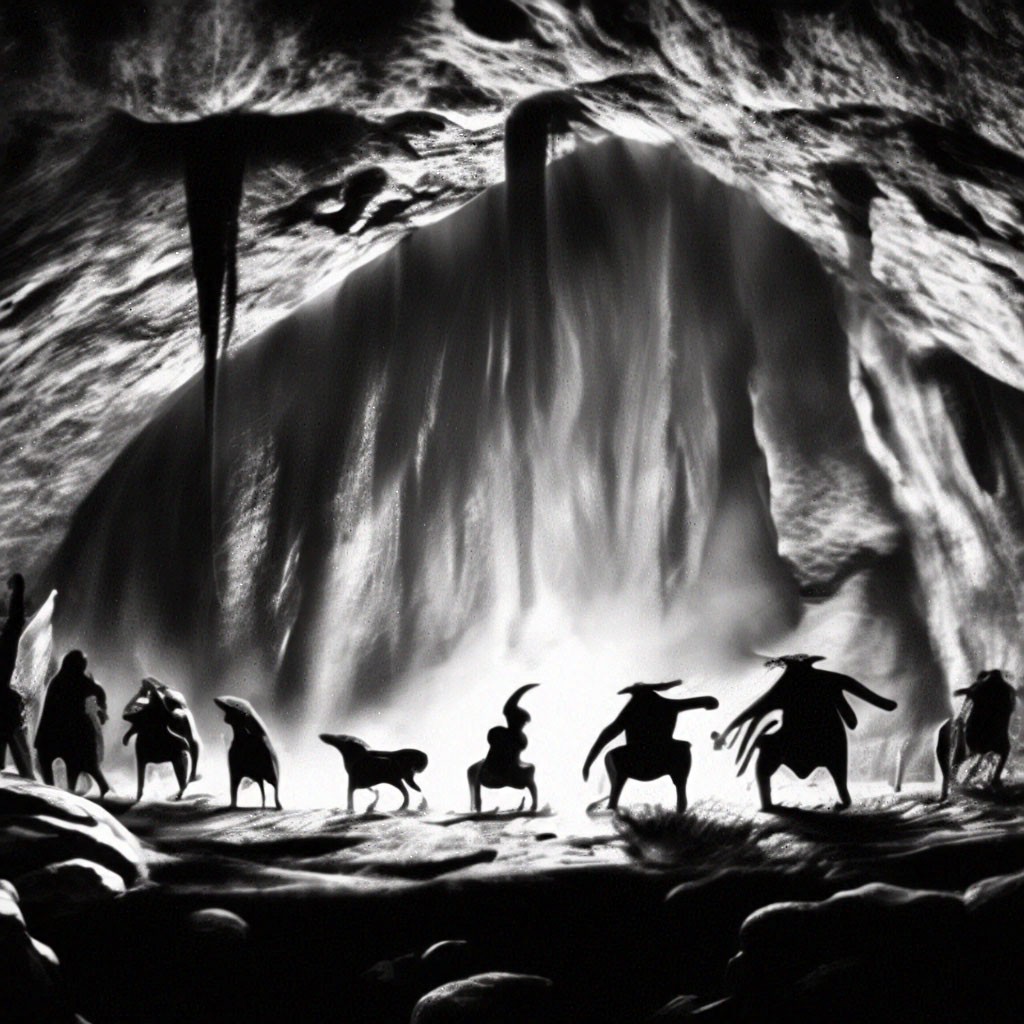 Жуткое зрелище! Не у каждого из моих современников психика смогла бы спокойно пережить явление сего образа перед глазами. Признаться, я тоже невольно содрогнулся, когда в полумраке пещеры, освещаемой лишь светом костра и лучами солнца, проникающими сквозь невысокий вход, появилась косматая голова, утыканная птичьими перьями и обвешанная разноцветными полосками, нарезанными из шкур разных животных. Голова эта покоилась на короткой мощной шее, была несколько удлинена в затылочной части, с покатым лбом, убегающим тоже к затылку. Челюсть выступала вперёд, но при этом подбородка не имела. А глубоко запавшие глаза Гукура скрывались под массивными надбровными дугами, поросшими густыми бровями.