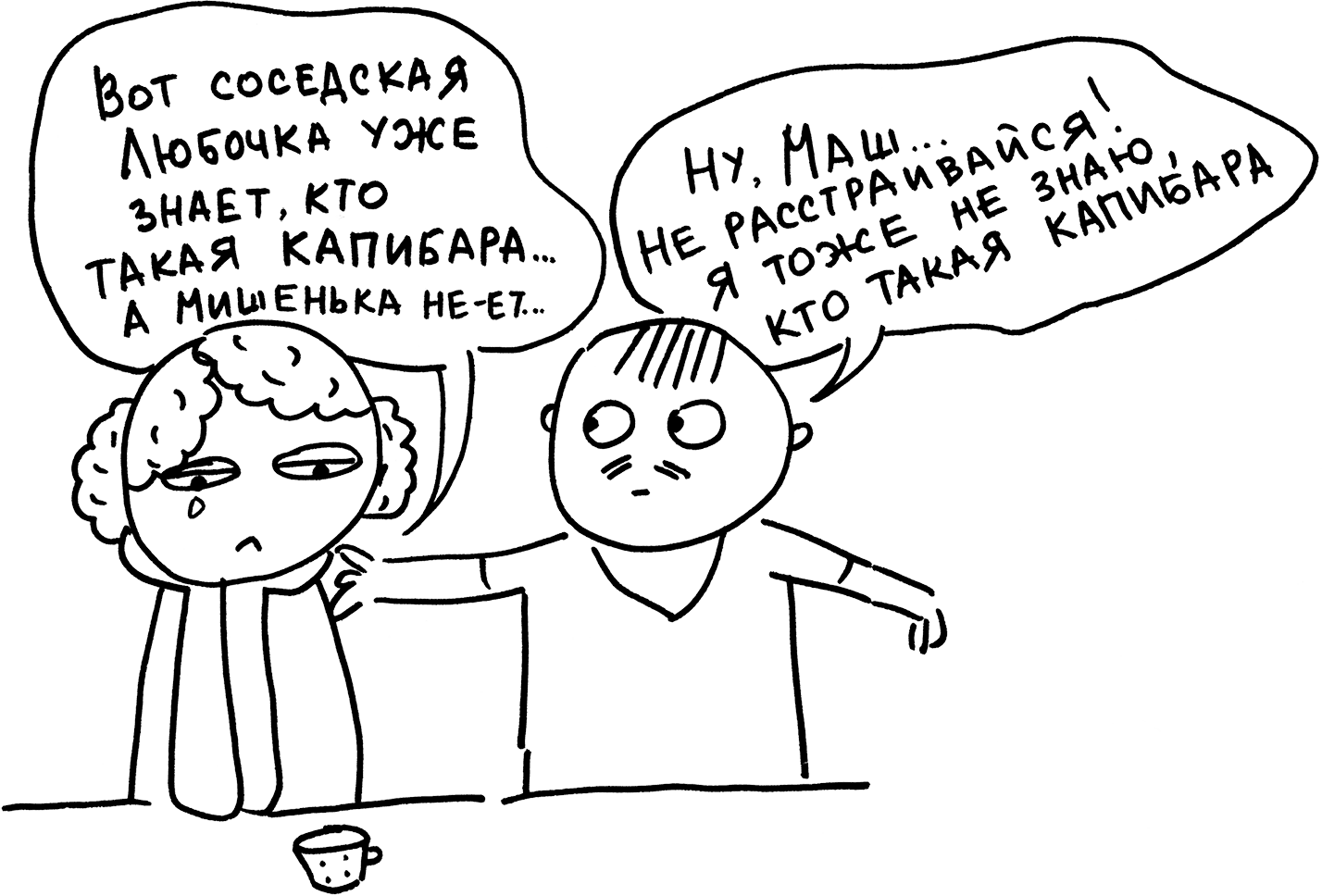 – Стирка да готовка – вот и день прошел, – печально выдохнула первая мама, а потом обернулась к своему ребенку, чтобы обозначить свое присутствие: – Копай, зайка, копай! – И вернулась к разговору с приятельницей. – Лето впереди, а летом опять не до занятий…