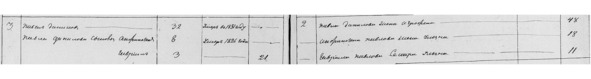 Николай, 23 года, который был женат. Жену звали Стефанида, 21 год и дочь Николая, Настасья, которой было 5 лет. Обратите внимание, Стефаниде 21 год, а дочери 5 лет, о чем это говорит, получается она ее родила в 16 лет. Забегая вперед, чтобы вы не искали в этой семье своих потомков, эта вся семья один за другим уйдут в мир иной. После себя они никого не оставили.