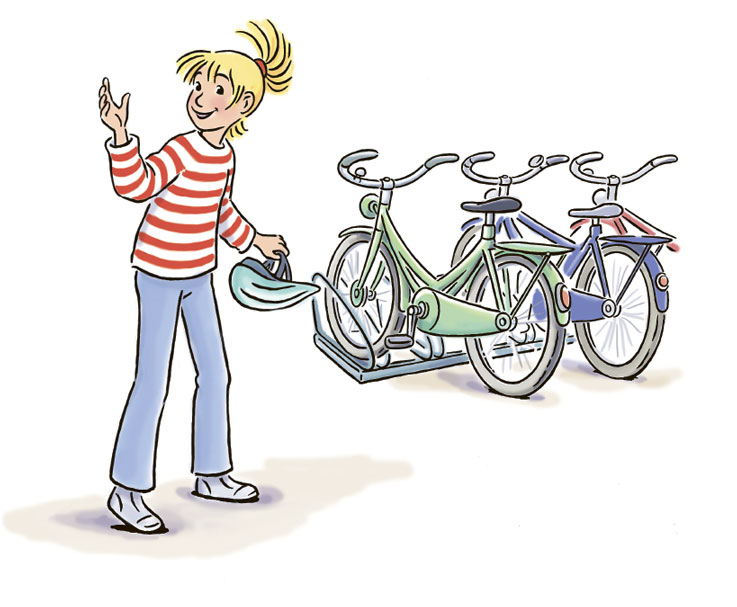 – Ну, тогда вперёд! – кричит Конни и мчится к своему велосипеду.