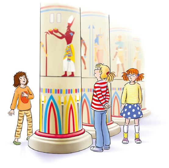 – А теперь совершим прыжок на другой континент – в Африку, – продолжала госпожа Ризих. – На севере Африки расположен Египет. Посмотрите, какие удивительные произведения искусства создавали там уже несколько тысяч лет назад. И не забывайте, – госпожа Ризих приложила палец к губам, – что в музее надо вести себя тихо.