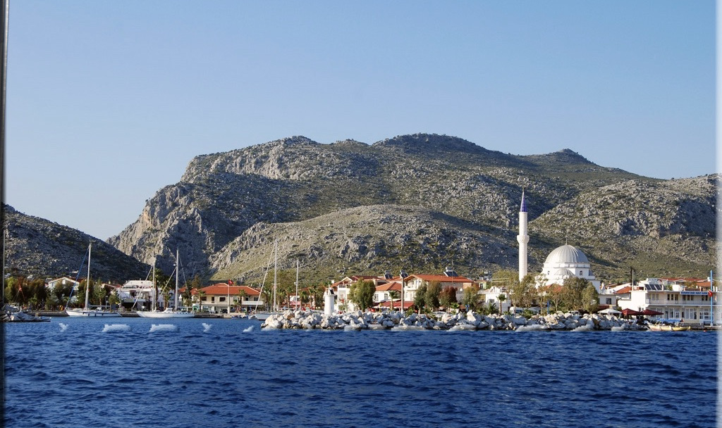 Утром я увидела, что мы стоим в маленькой марине, даже удивительно, как мы вчера смогли сюда протиснуться. Морская граница обозначена насыпью камней, которая еще выполняет функцию защиты от волн. У входа, справа и слева, маяки. Вдоль крохотной набережной ряд пальм, чуть выше человеческого роста, тут же сувенирные магазины и рестораны, как в любом курортном городке. Три улицы одно- и двухэтажных домов, максимум с мансардой, сделанной под третий этаж. Ничего примечательного. Единственное место, привлекающее взгляд – это огромная белая мечеть, особенно красива с моря. Однако, при ярком солнце, весь поселок выглядел божественно. Райское место.