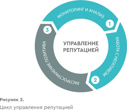 Управление репутацией – это не только внешние действия, но и подготовка компании к возможным кризисам, например составление регламентов на случай информационных атак или негативных инфоповодов. Работать нужно даже тогда, когда все хорошо. Цикл должен постоянно повторяться: мониторинг, работа с негативом, распространение позитива.