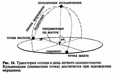 Звезды как мишеньНачнем с четырех таинственных шахт, которые выходят из камер Царя и Царицы в Великой пирамиде, инженерные аспекты сооружения которых мы рассматривали в конце предыдущей главы. Как уже говорилось, две из этих шахт смотрят точно на север, а две другие – точно на юг. Поэтому они нацелены ( на разной высоте ) на то, что астрономы называют меридианом – воображаемую линию, «разделяющую небо», которую можно представить себе, как дугу, соединяющую Северный и Южный полюса и проходящую прямо над головой наблюдателя. Именно момент пересечения этой воображаемой линии – меридиана звездами (а также Солнцем, Луной и планетами) называют кульминацией, то есть наивысшим положением над горизонтом.