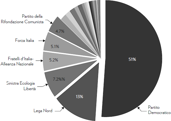 LECTURA | Entre 2015 y 2017, 51% de los contribuyentes que marcaron la casilla del “2 por mil” en su declaración de impuestos eligieron al Partito Democratico y 13% a la Lega Nord.