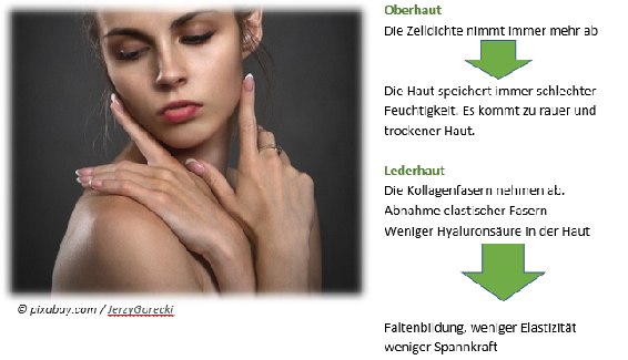 Auch die Kollagenbildung nimmt ab, ebenso wie der Gehalt an natürlicher Hyaluronsäure.