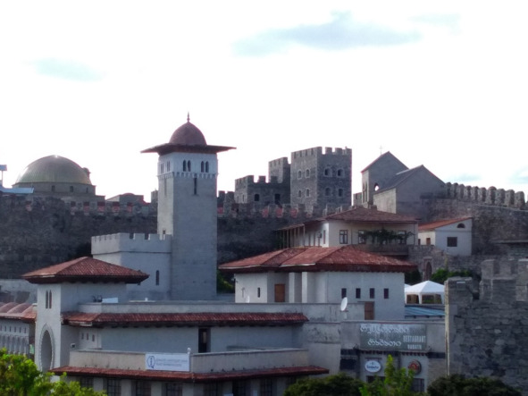 Еще утром местные жители рассказывали мне, что в предместьях, где-то рядом с городом, на высокой горе есть крепость, которую я непременно хотел отыскать. Проходя мимо частных домов и собирая по пути спелые сливы, которые тут росли в изобилии и буквально падали мне на голову, я все время смотрел на горные вершины в надежде ее отыскать. Сделать это было не так уж и просто, но добрые местные жители в очередной раз мне помогли и подсказали дорогу. К крепости вела узкая лестница, которая располагалась между домами и уходила в гору. Поднимаясь по ней все выше, я уже видел руины стен и башен. Скоро я уже увидел табличку с подробным описанием крепости. Это была «Gogia Fortress» или Гогиясцихе. Сохранилась она, к слову, достаточно плохо. Осталась только стена и одна из башен, но вид на город и близлежащие поселения был с нее просто фантастический. Город был как на ладони, видно было всё в мельчайших деталях. С этой целью ее и строили когда-то, уже очень давно. Дата постройки при этом варьируется между десятым и четырнадцатым веками. После четырнадцатого века таких крепостей и башен уже не строили, что, в свою очередь, делало ее по-своему уникальной. Она возвышалась с целью охраны входа в ущелье от нашествия турок, которые раньше часто воевали с местными феодалами. Также недалеко виднелись и другие крепости: Сали, крепость Петра и крепость Гвиргвина, которые находились к северо-востоку.