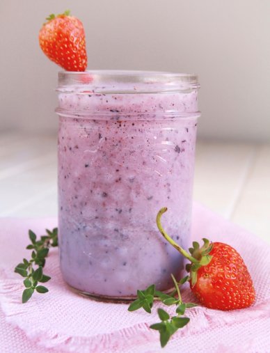 3 Coloque em copos e sirva com mirtilos cortados por cima.