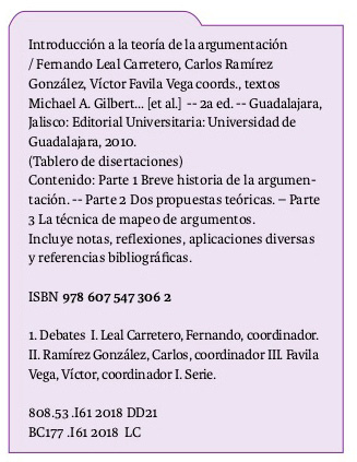El cuerpo académico “Retórica, lógica y teoría de la argumentación” fue creado en la Universidad de Guadalajara hace poco más de un año con el propósito firme de contribuir a cambiar este deplorable estado de cosas. Nuestro compromiso es organizar eventos, realizar investigaciones y promover publicaciones en torno a las diversas áreas de estudio anunciadas en su título. Este libro representa nuestro primer esfuerzo. Bajo el nombre ‘teoría de la argumentación’ (argumentation theory) se unen una gran variedad de disciplinas —de la filosofía al derecho, de la lógica a las comunicaciones, de la retórica a la inteligencia artificial, de la lingüística a la ciencia política— con el propósito de comprender cómo argumentamos los seres humanos, cómo están estructurados los textos argumentales que construimos, cómo podemos mejorar nuestras prácticas argumentativas. Es un campo prácticamente desconocido en nuestro medio, y la idea de este libro es informar a docentes, investigadores y estudiantes de educación media superior y superior sobre su existencia y variedad.