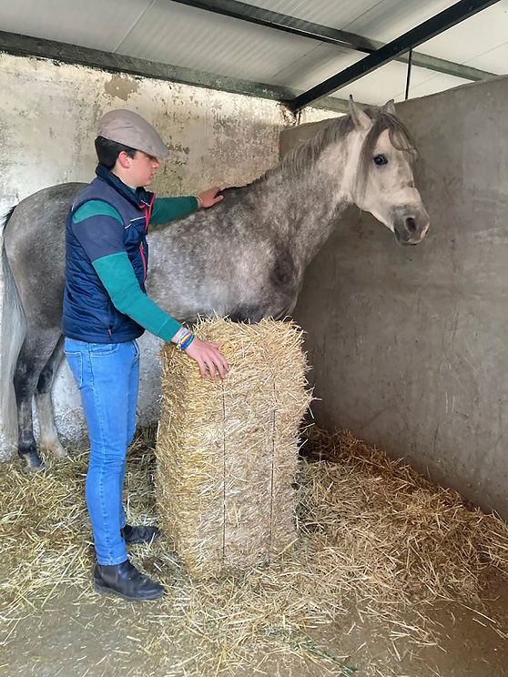 Empezamos repartiendo la ración de pienso a cada uno de los animales que se encontraban en las cuadras. Normalmente suele ser un pienso compuesto, variando según el animal la cantidad y la de los cereales naturales, según sean sementales o potros; es decir, si están de descanso o en cubrición, son potros más adelantados en doma base o que se están preparando para alguna competición donde necesitan más energía. Todo esto me lo explicó el señor Luis según le ponía el pienso a cada uno. No siempre había en las cuadras los mismos animales, por lo que tenía que saber qué ración había que aplicarle a cada uno, ya que los potros eran vendidos según aparecía un comprador y se llegaba a un acuerdo en la negociación.