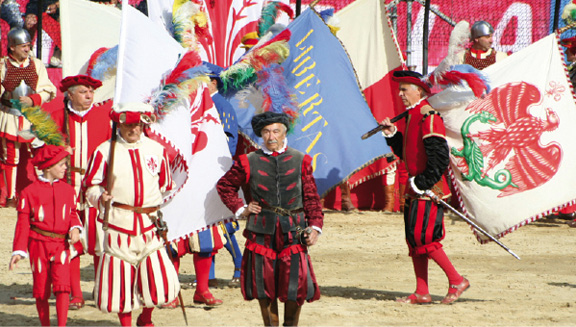 El último sábado de junio se celebran dos eventos distintos pero significativos: por un lado, una procesión histórica al estilo de un enorme desfile militar a lo largo del río Arno; y por el otro, la batalla que tiene lugar en el Ponte di Mezzo y en la que se pone a prueba la fuerza física de los contrincantes en un ambiente altamente competitivo.