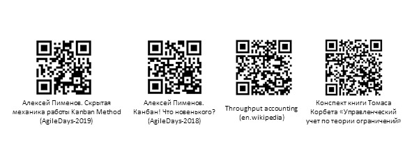 Отметим, что при масштабировании Kanban-системы на компанию в целом или на автономные бизнес-единицы помимо метрик, показывающих прохождение потока задач становятся актуальными метрики, показывающие финансовые результаты деятельности. Естественным желанием является взять готовую систему стандартных финансовых метрик. Засада в том, что не всякая система метрик является совместимой с теорией ограничений, которая лежит в основе Kanban. Это подробно разобрано в книге Томаса Корбета «Учёт прохода. Управленческий учет по теории ограничений» (оригинал называется «Throughput accounting», есть русский конспект). И может получиться, что оптимизация потока оценивается метриками и KPI негативно. Эту опасность необходимо представлять, и выбирать метрики правильно.