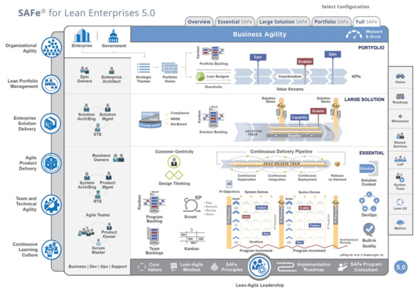 Scaled Agile Framework (SAFe) является самым сложным Agile-фреймворком, но при этом – самым популярным. Это сложная конструкция уровня компании с управлением потоками создания ценности и архитектурой. На мой взгляд, популярность этого фреймворка сродни популярности PMBOK или RUP – в нем есть все и на все случаи жизни, и предлагается просто взять нужное. Кстати, автором фреймворка является Дин Леффингуэлл (Dean Leffingwell), один из авторов RUP.