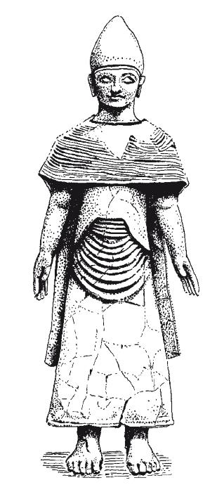 Терракотовая статуя, найденная на Кипре. Реконструкция из нескольких фрагментов, высота 1,2 м. Благодаря месторождениям меди остров Кипр играл важную роль в политических и экономических связях бронзового века.