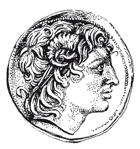 Портрет Александра Македонского на греческой тетрадрахме. Македонский царь изображен с царской повязкой на голове и символом божественного происхождения – рогами Зевса-Аммона.