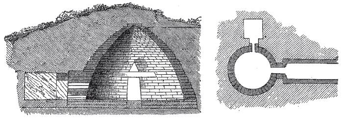 Последнее пристанище царей: разрез и план «Сокровищницы Атрея» в Микенах на холме Панагица.