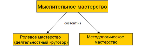 В мыслительном мастерстве задействуется ролевое мастерство и методологическое мастерство. Ролевое мастерство помогает выявить заинтересованных лиц и разобраться с рассматриваемой деятельностью20. Методологическое мастерство, в первую очередь, помогает формализовать и найти решение задачи.