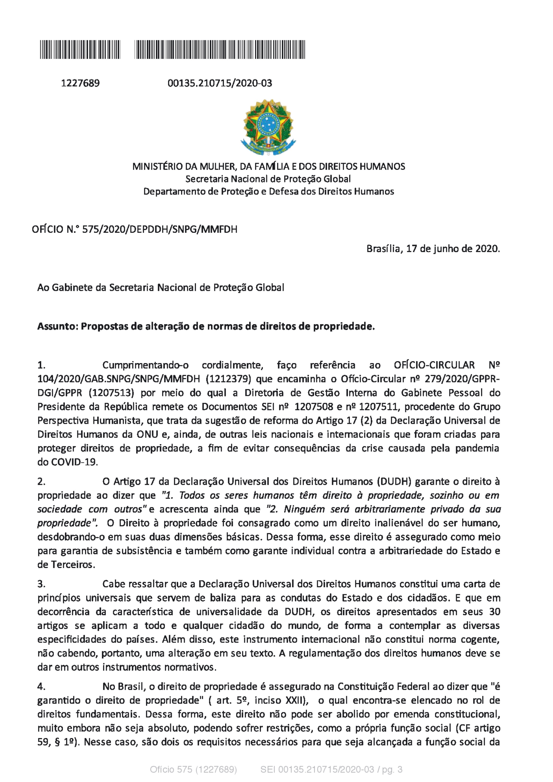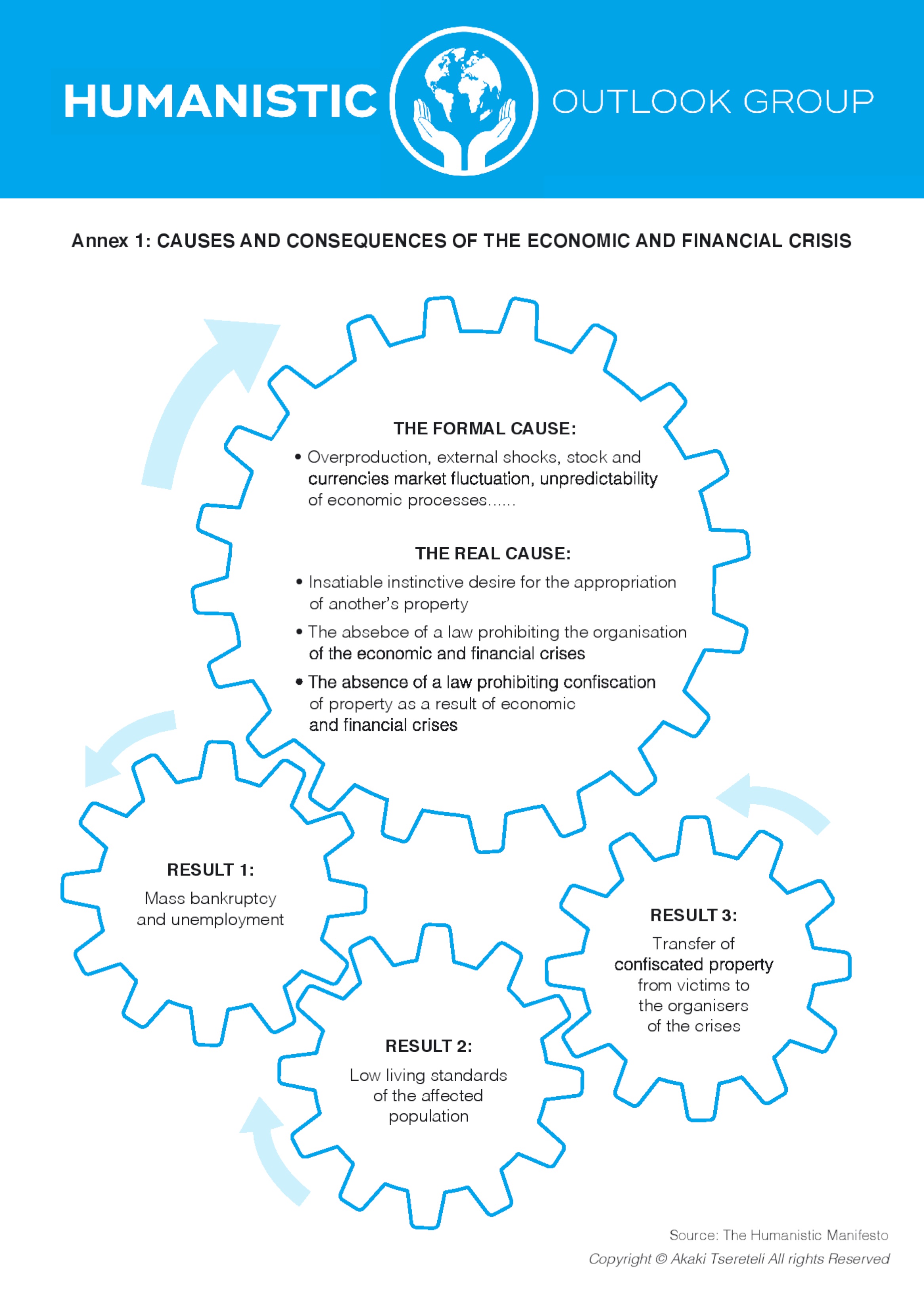 Принимая во внимание, что «причиной экономических и финансовых кризисов, представляющих собой массовые нарушения прав человека, в том числе прав собственности, является отсутствие закона, который предусматривает уголовное наказание за их преднамеренную организацию» (из книги «Гуманистический манифест»), и руководствуясь желанием не допустить усиления разрушительных последствий нынешнего кризиса, вызванного COVID-19, и избежать более тяжёлых последствий будущих кризисов, мировое сообщество должно немедленно инициировать реформирование статьи 17(2) Всеобщей декларации прав человека, а также других национальных и международных законодательных актов по защите прав собственности. В частности: