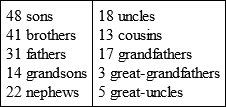 The probabilities of kinsmen of illustrious men rising to eminence are – 15½ to 100 in the case of fathers; 13½ to 100 in the case of brothers; 24 to 100 in the case of sons.