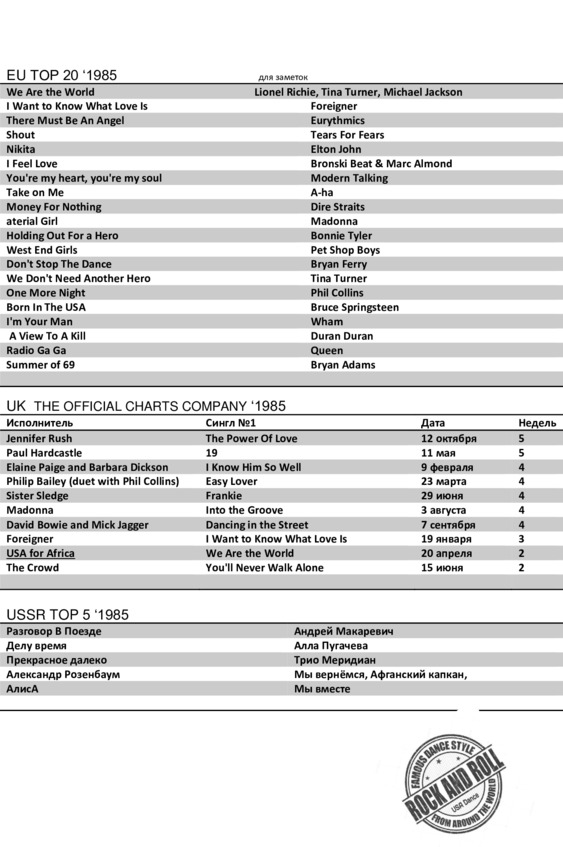 А на отечественной эстраде господствует Алла Пугачева со ставшими воистину народными хитами «Делу Время» и «Паромщик». Широко, даже как-то не по рок-н-ролльному, популярна и песня «Разговор В Поезде» Андрея Макаревича.