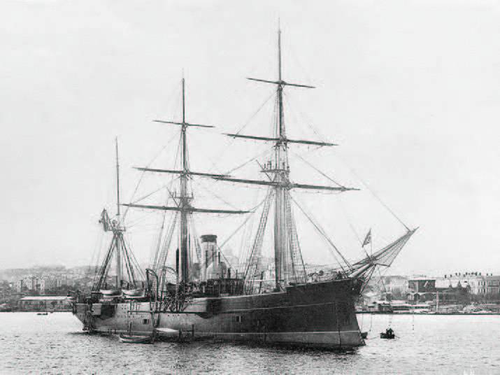 «Герцог Эдинбургский» в первое свое океанское плавание вышел в первых числах января 1881 года. 10 января 1881 г. фрегат был в Шербуре и 17-го пришел в Гибралтар и далее направился в Средиземное море. Во время перехода корабль показал прекрасные мореходные качества»[17].
