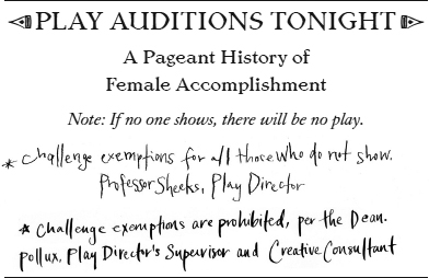 “Guess we’re all auditioning for A Pageant History of Female Accomplishment,” Agatha crabbed. Then she caught Sophie’s excited look and frowned. “You’re not getting a part.”