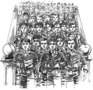 Sophie peered up at Aric and his red-hooded henchmen on Malice’s banister, looming over all the other boys. They had coiled whips at their belt, red soldier jackets over their shirts, and the rest of the boys looked even more scared of them than before. Clearly the teachers had found their replacement for last year’s wolves.
