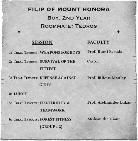 “Tried to make ’em bunk us together, but they already put a prince from Ginnyvale in my room,” Hort said, peeping back at the new boy. “School’s strict now that the teachers are back. If you ask me, Aric and his henchmen make those old wolves look cuddly. But don’t worry. I’ll keep my best friend outta trouble.”