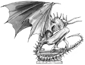 Agatha shielded her eyes and peered through the sparkling blur to see the first stone gargoyle yawn and spread his dragon wings. Then the second gargoyle, with a snake’s head and lion’s trunk, stretched his with a gunshot crack. Then the third, twice as big as the others, with a horned demon head, man’s torso, and studded tail, thrust out jagged wings wider than the tower.