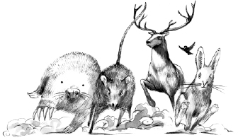 Before Agatha could move, the stampede came from every direction. Squirrels, rats, dogs, moles, deer, birds, cats, rabbits, the bumbling otter—every animal on the school grounds, every animal that could squeeze through the gates charged towards their savior. . . .