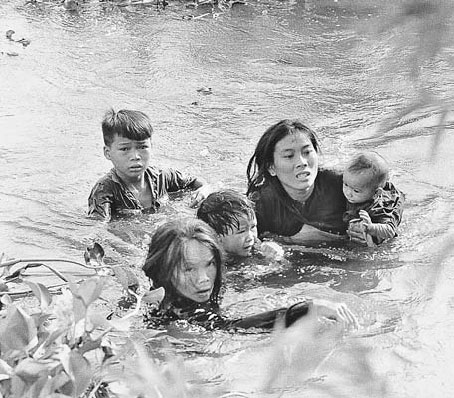 Мотивы защиты себя и тех, кто нам дорог. Эта женщина и ее семья спасаются бегством из горящей деревни во время вьетнамской войны. Реальные или воспринимаемые угрозы, исходящие от других групп, мотивируют различные виды социального поведения, включая расовые предубеждения и агрессию.