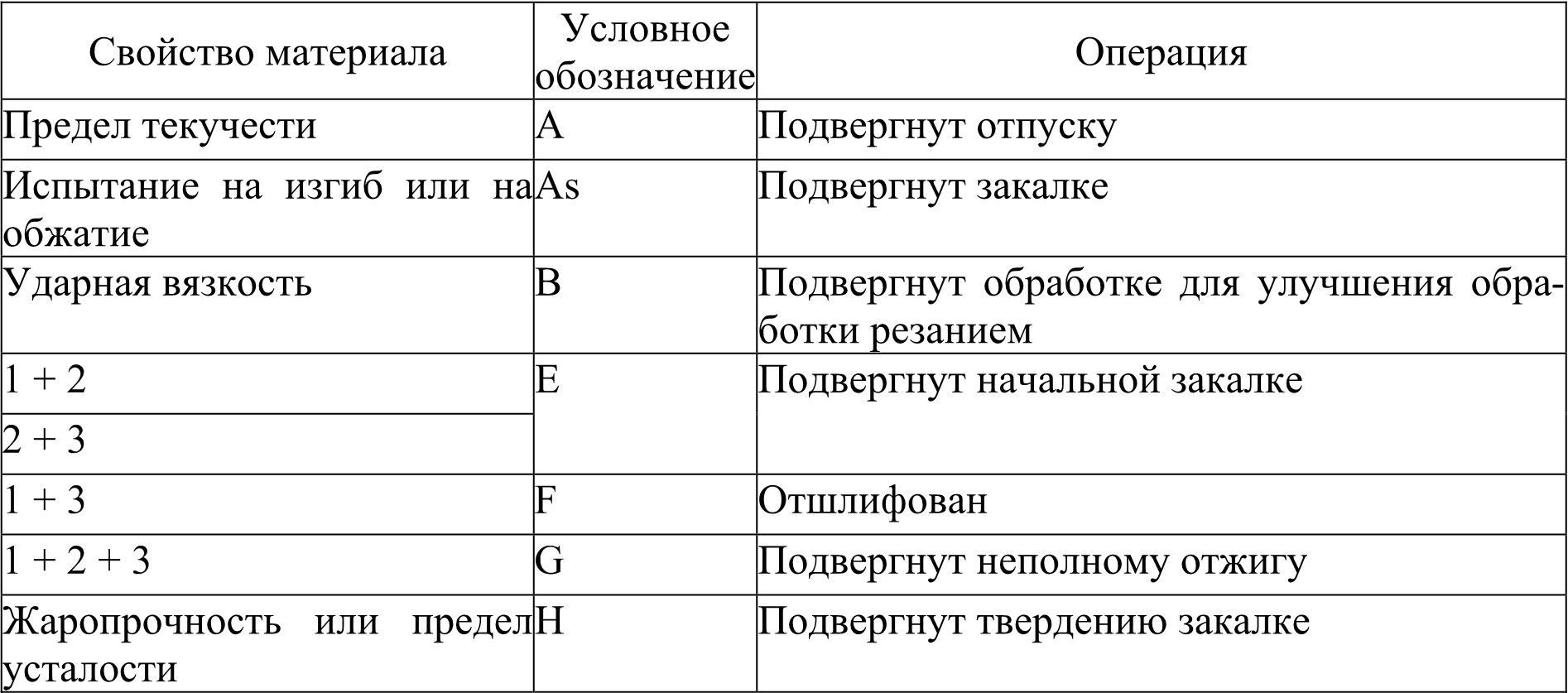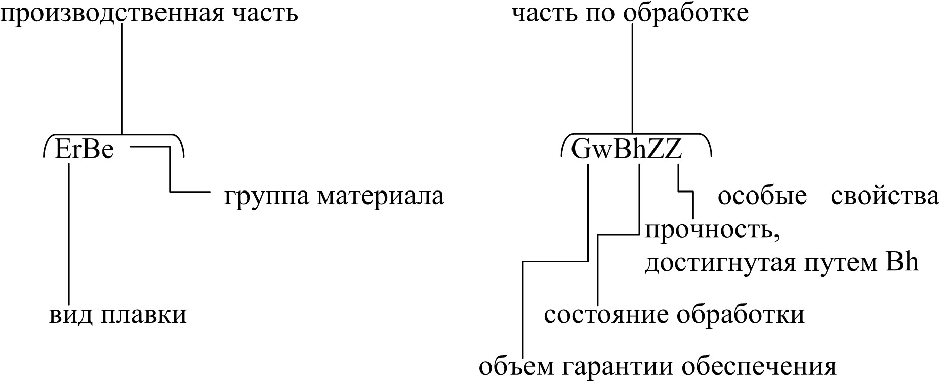 Часть по обработке включает гарантийный объем, обеспечиваемый изготовителем, состояние обработки, а также достигнутую при этом прочность (табл. 2). Если при этом должна быть указана минимальная величина прочности без указания определенного состояния обработки, то перед прочностью ставится буква F.