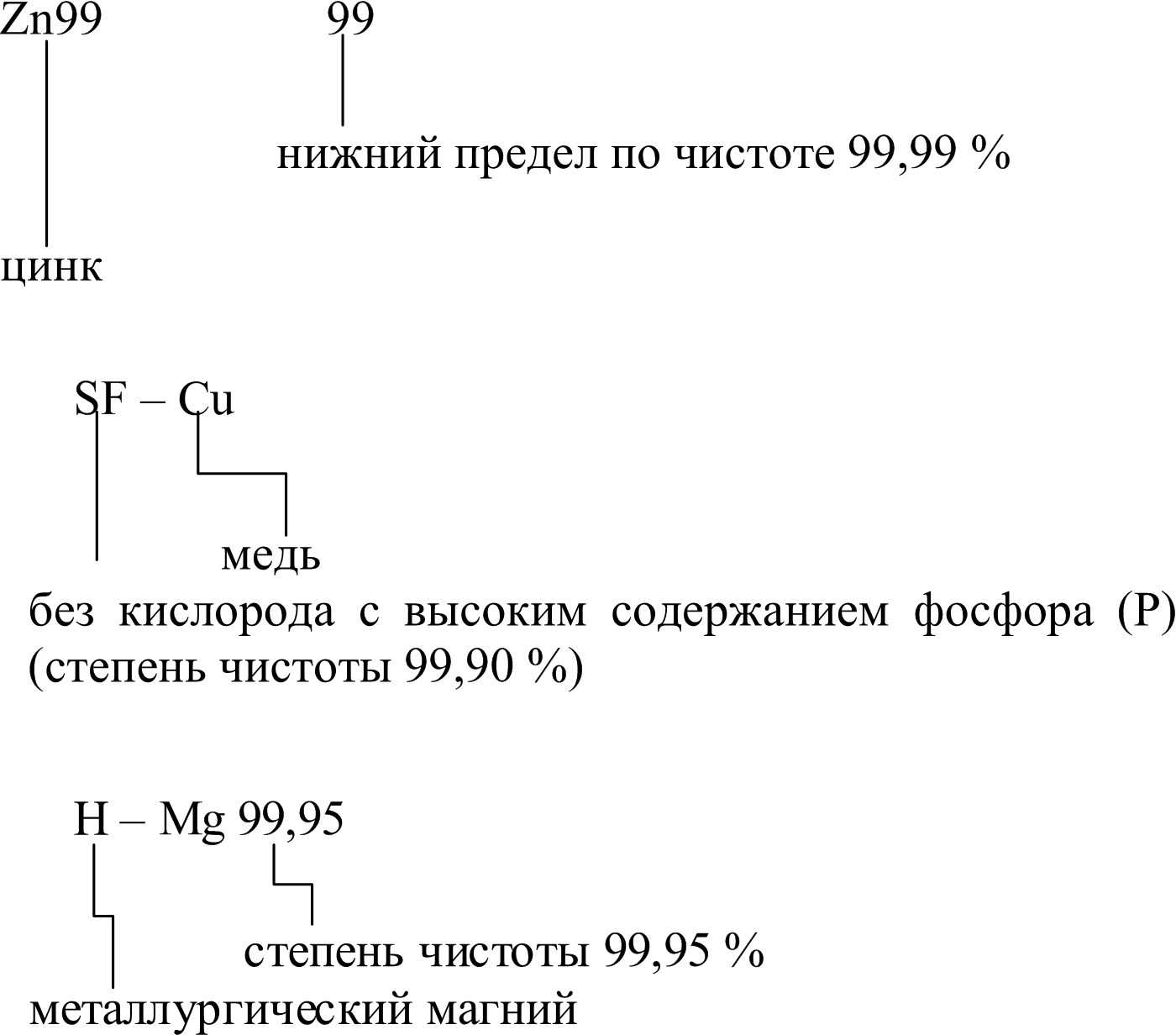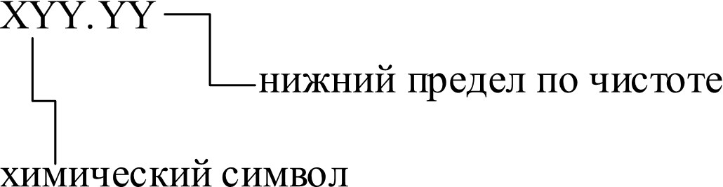 Чистые металлы обозначаются своими краткими символами и по нижнему пределу, и по чистоте.